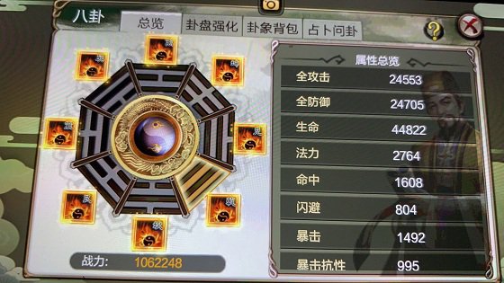 了解了卦象強化,妳必定也想知道自己用什麼卦象最合這。小編吐血整理了四橙四紫卦象的全特點加成,以下數值全為卦象強化0,卦盤強化0情況下,八件套+單個卦象特點之和。終究選擇培養什麼,就看妳自己的特點培養需求了。 大衍八件套——首要提高(元素進犯)全進犯2677,全防護2677,生命12884,法力795,射中488,閃兜244,暴擊418,暴抗279,穿透114,耐性114,暴傷146,暴減146,水攻1846,火攻1846,土攻1846,水防4385,火防4385,土防4385。