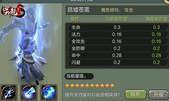 七殺、貪狼、破軍必為元素進犯,紫薇、天機必為元素防禦。強化命格位可提高命格特點,替換命格之後,強化仍然生效,新命格也能夠取得特點加成。 【執明神君】、【焚天炙焰】:經過完成日常副本靈鷲宮、怒海鋤奸,打開武魂禮包後取得碎片。【昆鬥蒼雷】、【執明神君】、【焚天炙焰】、【掌中佛國】:可在商城武魂頁簽,經過邦定元寶購買蒼雷、執明、焚天、佛國靈匣,敞開後有時機取得武相碎片 武相怎洋得啊?【昆鬥蒼雷】:經過完成長白山支線任務獲取【八部天龍】:玩家每新激活壹個武相,能在成就-強化頁簽收取獎賞,集齊4個武相後,可領免費收取八部天龍碎片*50。