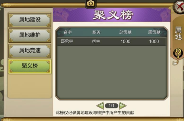 ! 【属地竞速得绑定元宝 聚义榜英雄风云】玩家在必定时间段内将属地建造等级提升至目标等级,帮会内所有精英及以上头衔者就取得一次性的绑定元宝奖赏。 便形成了集合风云人物、英雄豪杰的聚义榜,不仅增添了游戏的趣味性,还大大增强了帮会属地与个人之间的荣誉竞争感,让属地建造丰富了许多。 想要取得额定奖赏就在规则时间内努力建造自己的帮会属地吧!玩家在建造属地过程中的建造和保护捐赠还会形成贡献值,根据每位玩家的贡献值形成排名。